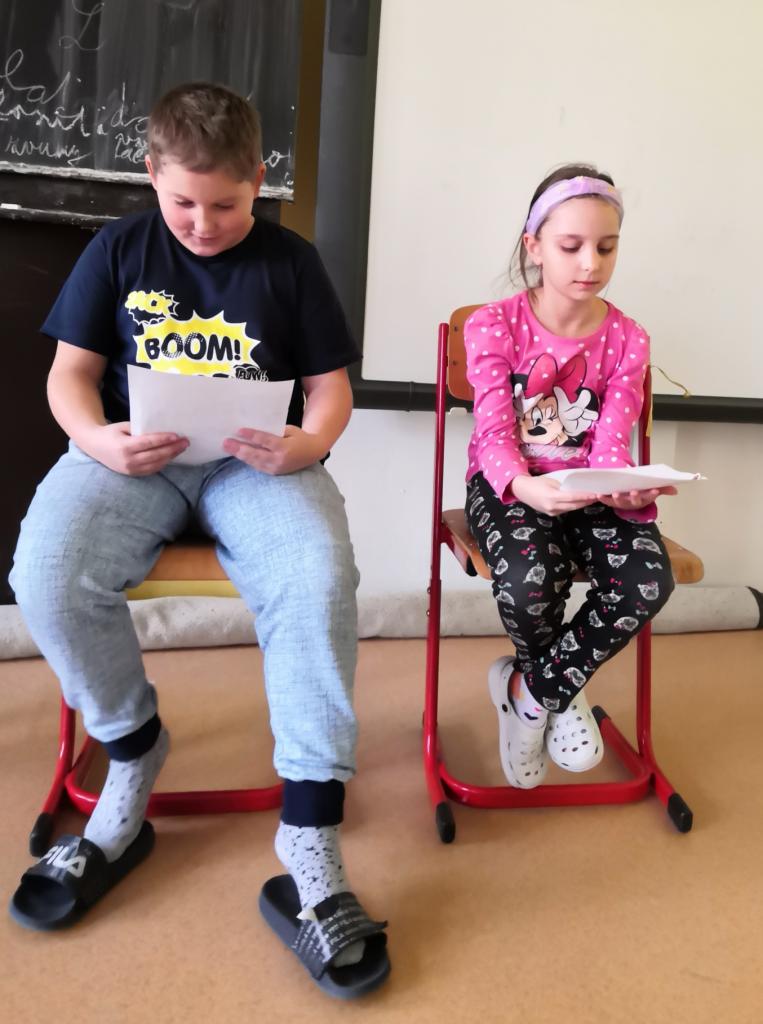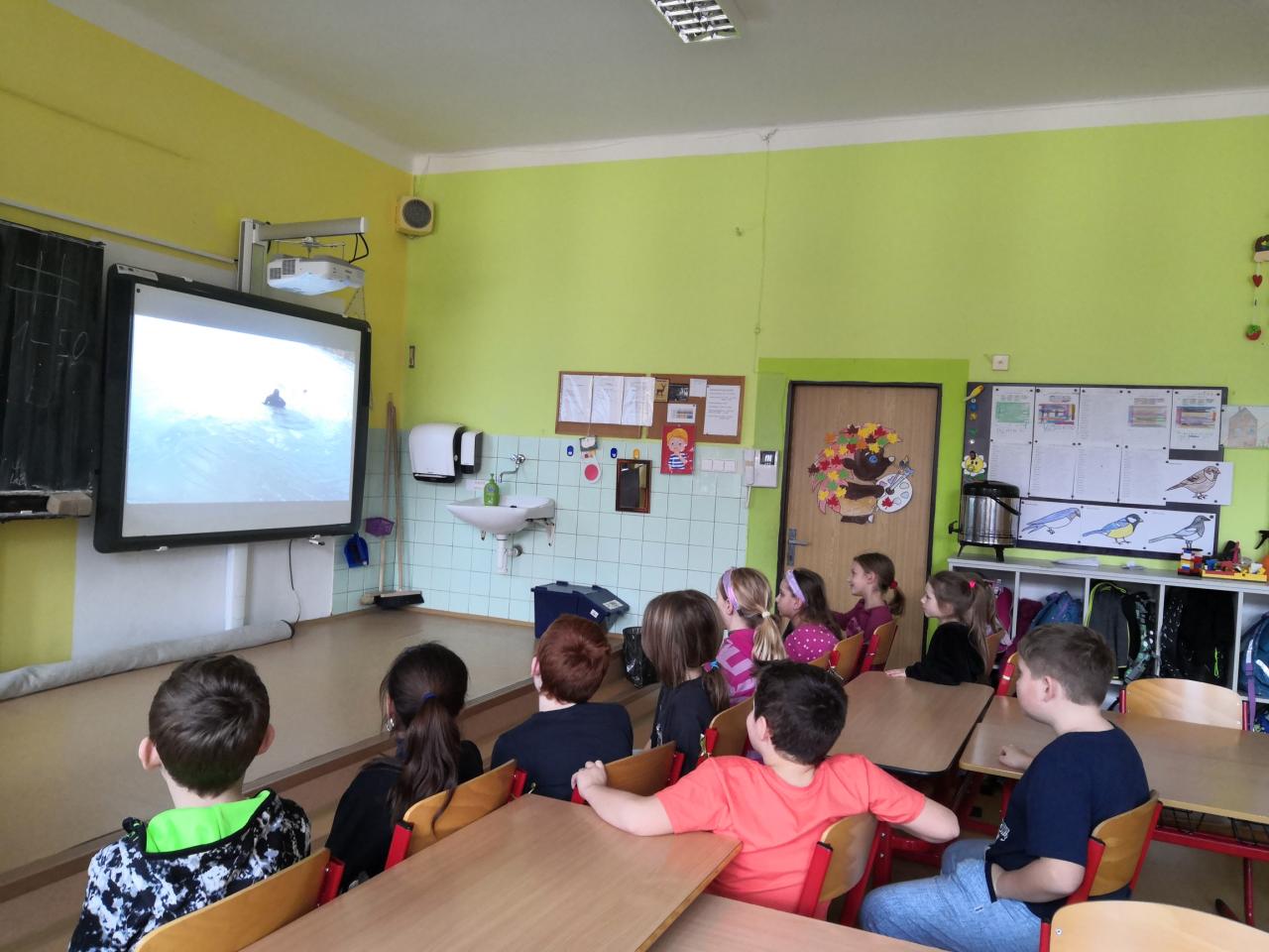 Sledování video-ukázky na dataprojektoru, rozhovory o ukázce a následně ve skupinách psaní krátkého příběhu viz. obrázek. Prezentace příběhů skupinami.