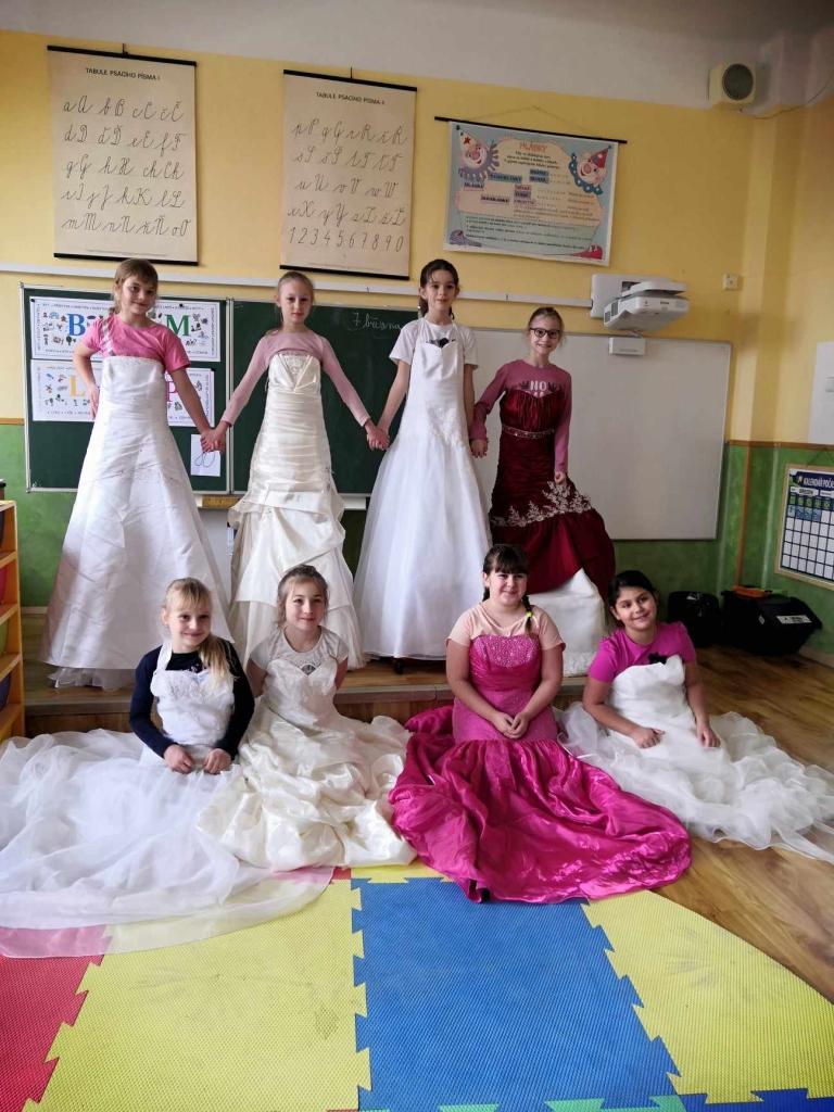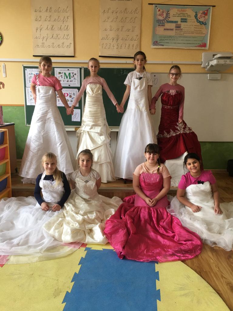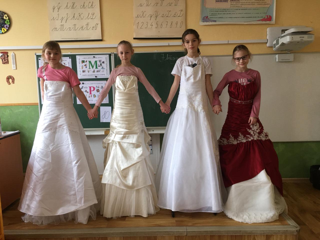 Módní přehlídka svatebních šatů v družině u námořníků. Modelkami se na pár chvil staly dívky ze 3. A a 2. třídy.