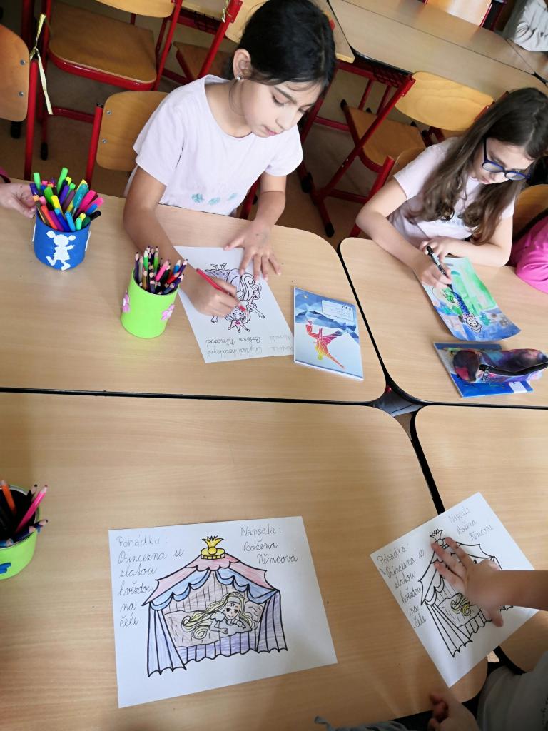 Čtení pohádek od Boženy Němcové a ilustrace ke čtenému příběhu.