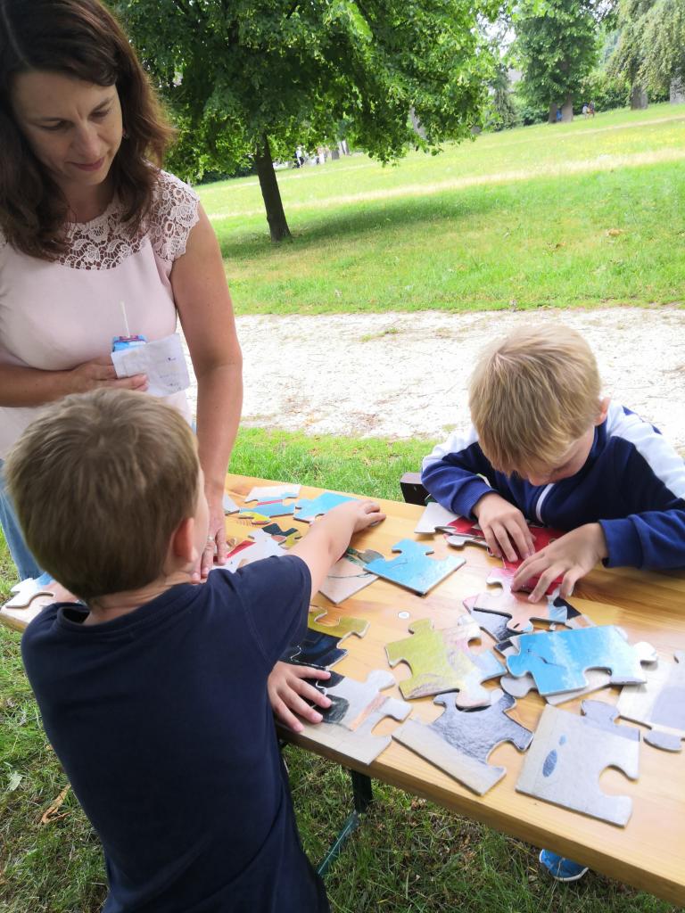 DĚTI a ŽÁCI si to skvěle užili a za občasné pomocí rodičů měli puzzle postavené raz dva.