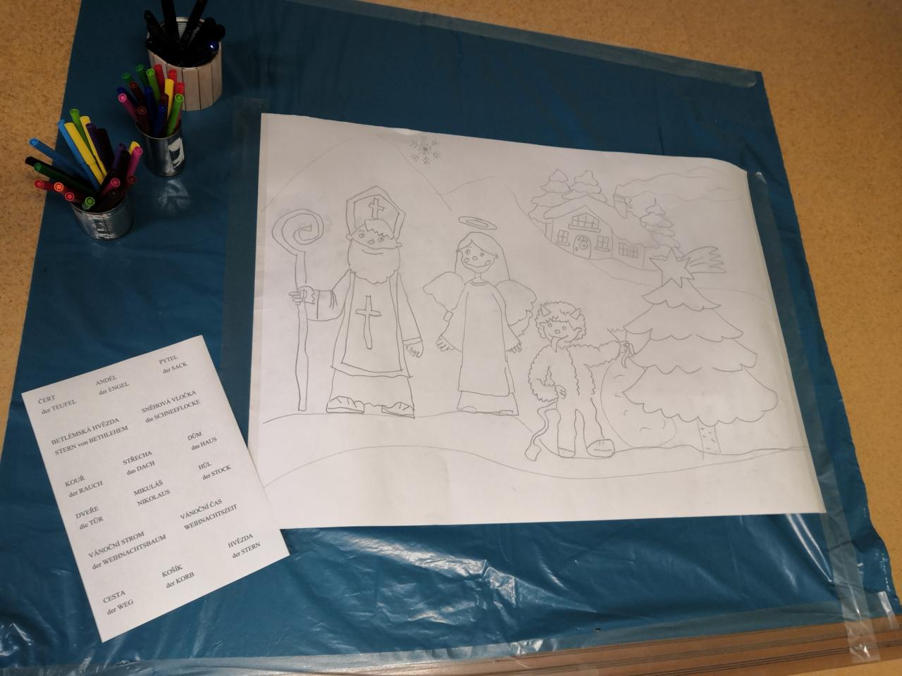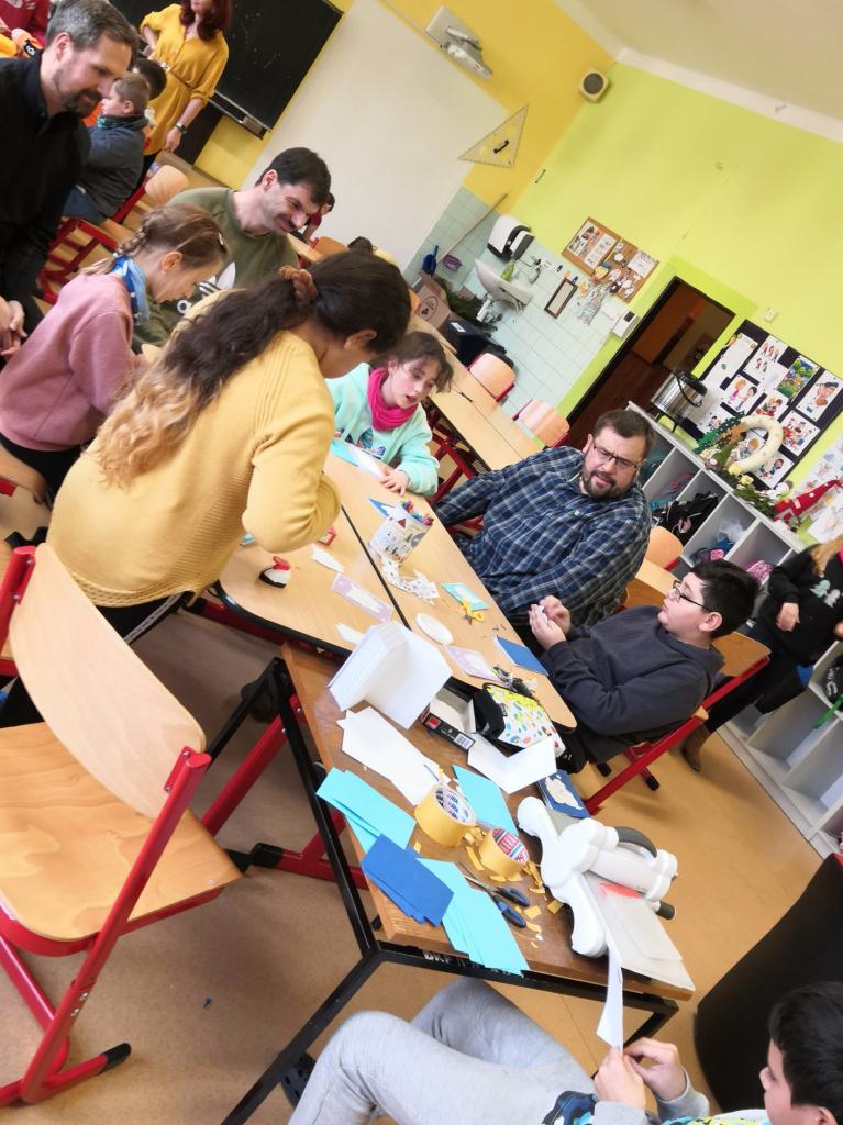 Společné tvoření žáků z partnerské školy Schönsee a našich žáků.