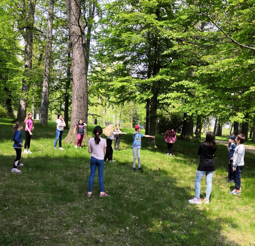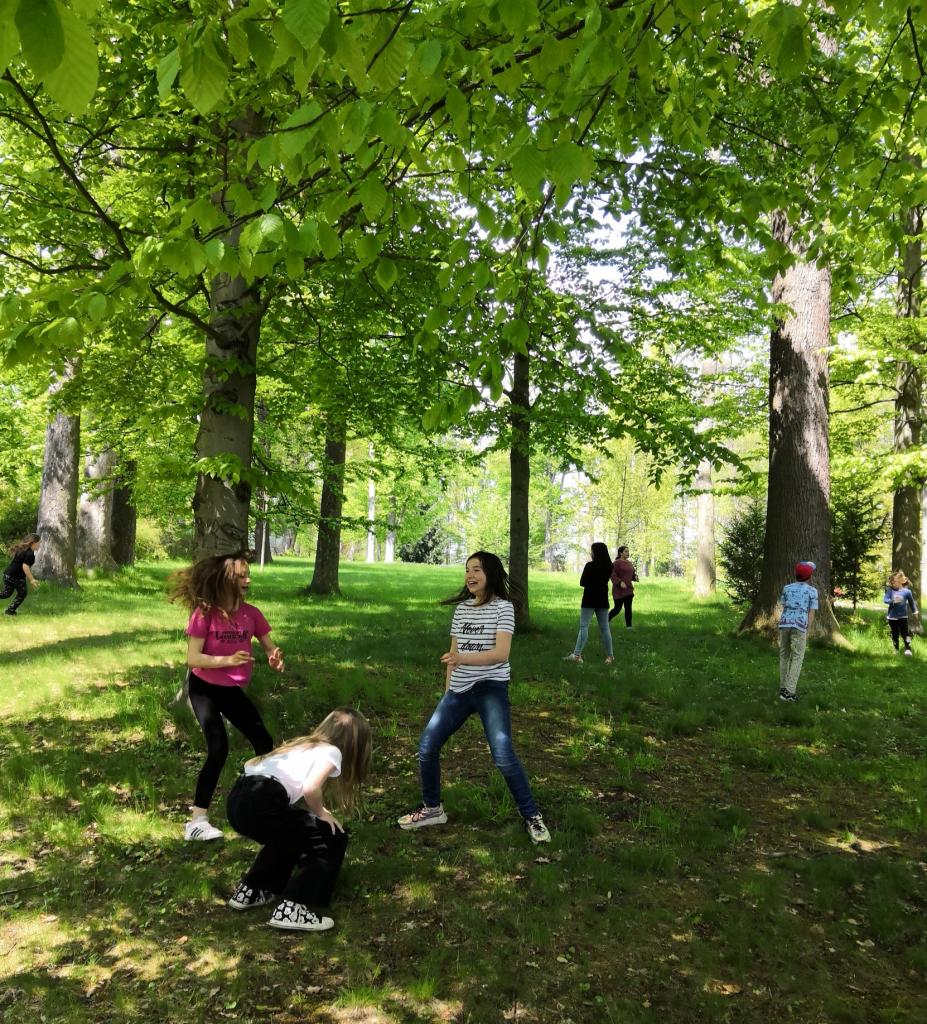 Zámecký park je námi často vyhledávaným místem. Zde hrajeme rádi různé kolektivní a pohybové aktivity.