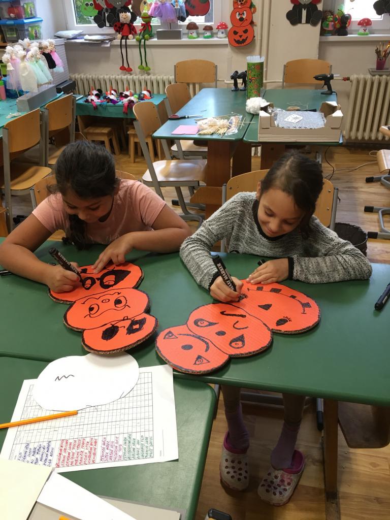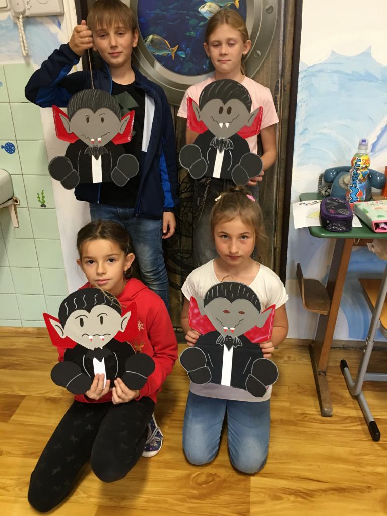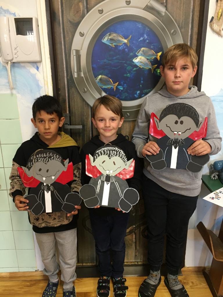 V naší školní družině se nikdy nenudíme. Letos si žáci mohli vyrobit dekoraci na dveře (upíra nebo dýně), tužkovník v podobě mumie, dýně nebo jiných příšerek. Společně jsme pak nakreslili plakát s duchy a strašidly.