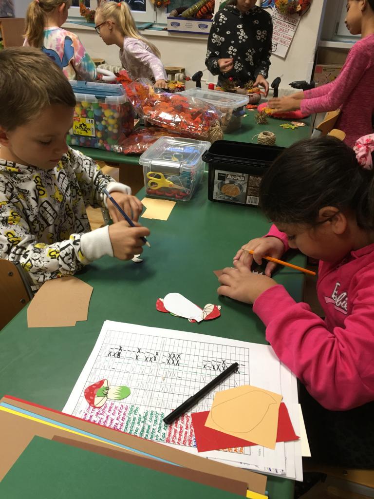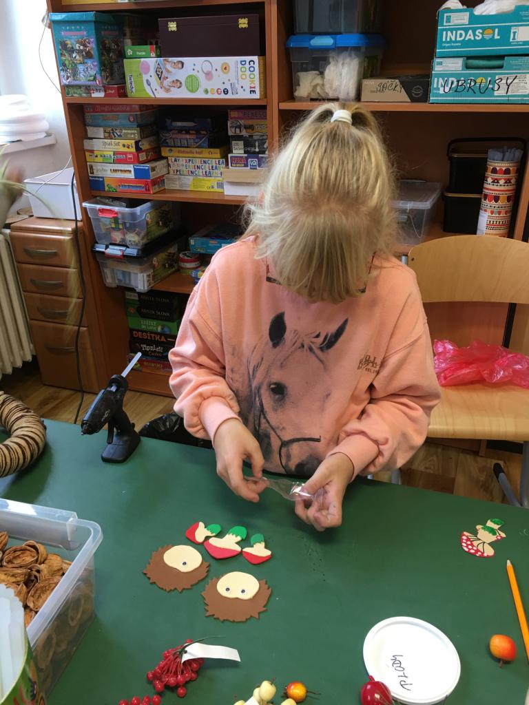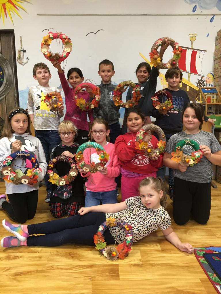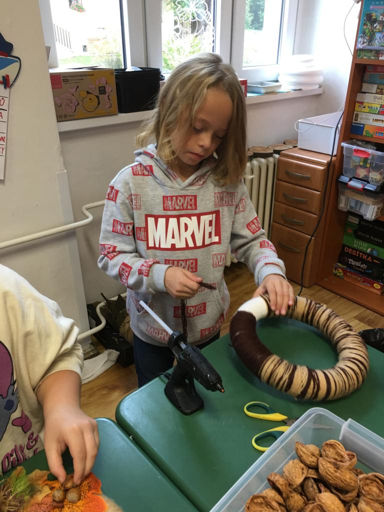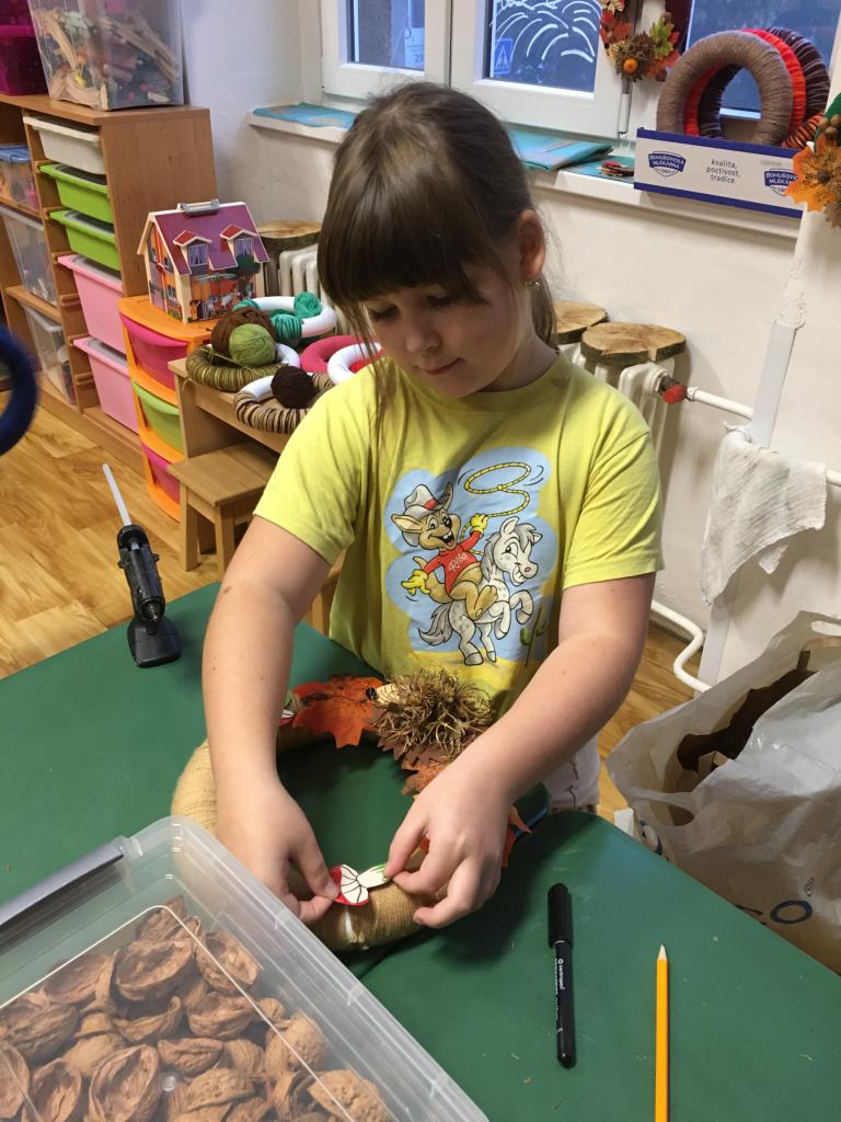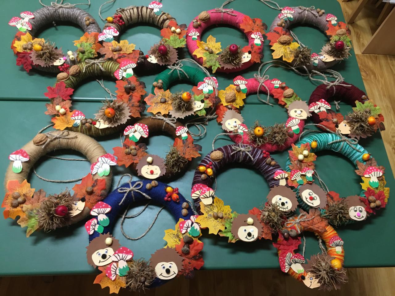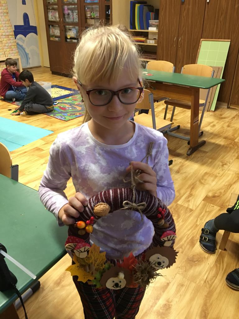 Padající barevné listí, žaludy, kaštany a jiné přírodniny, ale také dupající ježky. Tohle všechno děti z družiny dokázaly naaranžovat na věnce a vytvořily tak krásnou dekoraci na vchodové dveře.